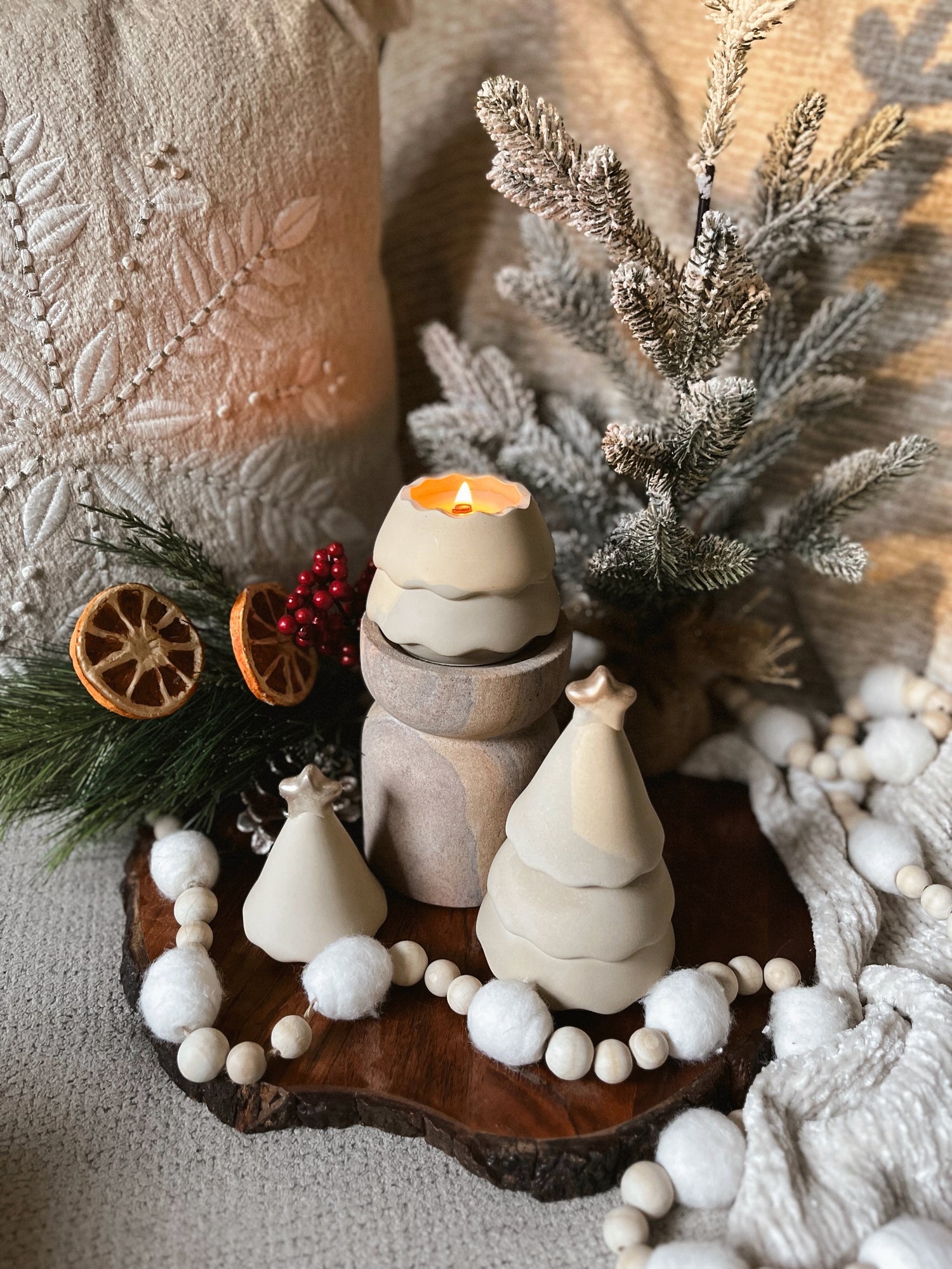 Bright, juicy and warm with that nostalgic sparkle of christmas morning. Timeless cozy holiday warmth. Citrus Garland captures the glow of oranges studded with cloves, garlands of greenery and golden candlelight on a winter's day.